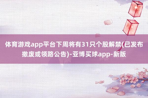 体育游戏app平台下周将有31只个股解禁(已发布撤废或领路公告)-亚博买球app-新版