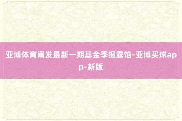 亚博体育阐发最新一期基金季报露馅-亚博买球app-新版