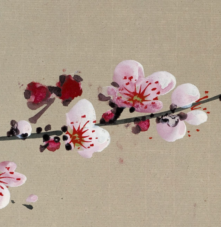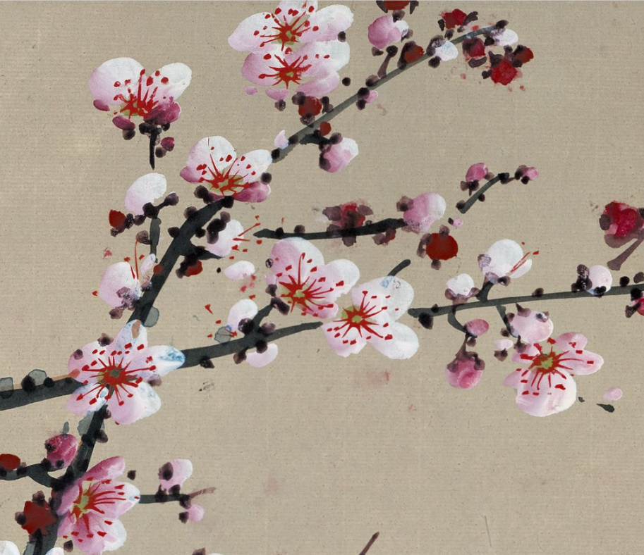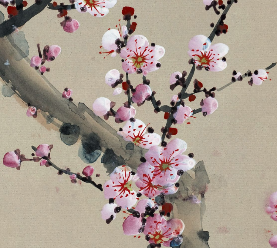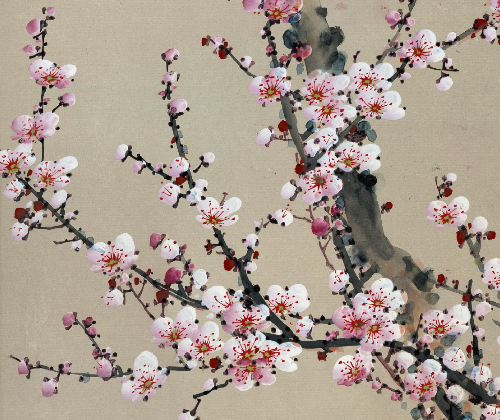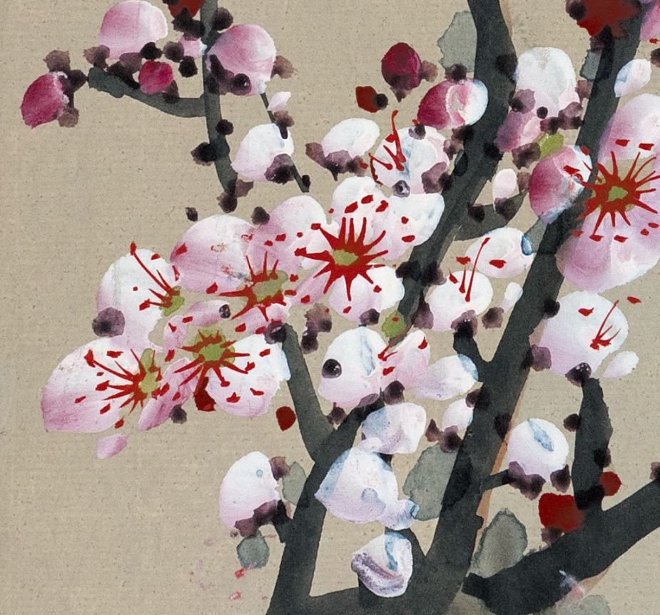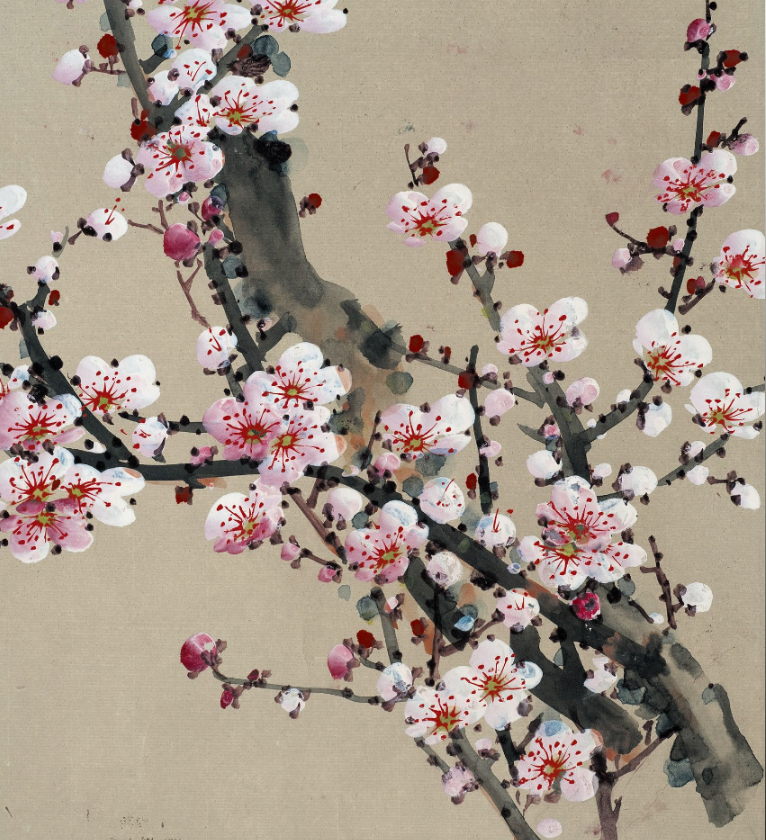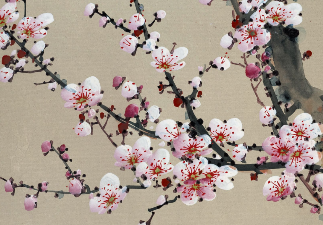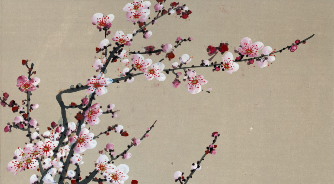 这幅作品中的粉梅色调轻柔而精雅,与墨色的枝干造成了显着的对比,却又融合长入。粉梅的后光仿佛带着一点憨涩与妩媚,又清楚出一种精辟与清雅的气质。这种色调的诓骗,不仅使得画面愈加纯真意旨,也更好地抒发了梅花坚合手不懈、精辟自守的精神内涵。
